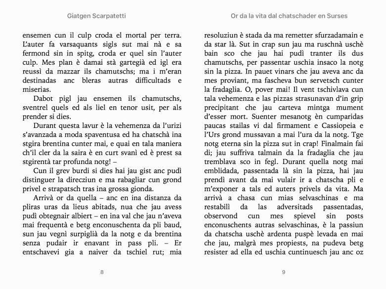 | Indicaziuns bibliograficas Autur(a): Giatgen Scarpatetti Titel: Or da la vita dal chatschader en Surses Onn da publicaziun: 2017 (e-book en rumantsch grischun; la versiun surmirana è cumparida il 1896) Dumber da segns: 20 500 Links Telechargiar sco e-book |
