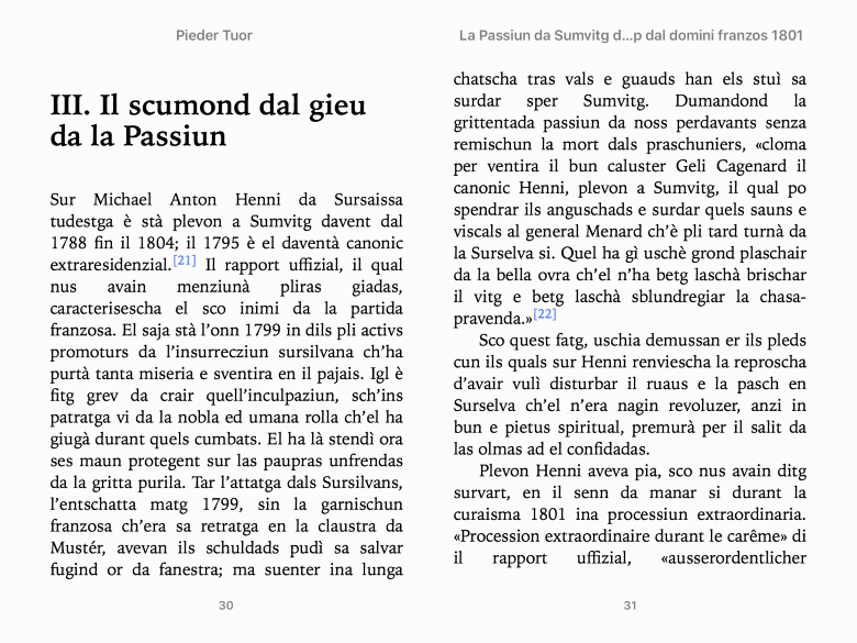 | Indicaziuns bibliograficas Autur(a): Pieder Tuor Titel: La Passiun da Sumvitg dal temp dal domini franzos 1801 Onn da publicaziun: 2017 (e-book en rumantsch grischun; la versiun sursilvana è cumparida il 1911 en l’Ischi) Dumber da segns: 59 500 Links Telechargiar sco e-book Infurmaziuns supplementaras davart las Passiuns rumantschas Infurmaziuns biograficas |